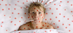El sarampión es una de las enfermedades infecciosas más contagiosas. Provocada por un virus, se transmite por contacto directo con las secreciones de la nariz, de la boca o de la garganta, que se diseminan fácilmente a través de pequeñas gotitas que flotan el aire o que contaminan los objetos. Se caracteriza por la aparición de fiebre y síntomas catarrales, seguidos por la aparición de un exantema típico, consistente en manchitas rojizas irregulares. Suelen aparecer inicialmente en la cara y el cuello, aunque se extienden rápidamente por todo el cuerpo. En su momento álgido, la fiebre puede ser elevada y el enfermo se siente realmente mal.