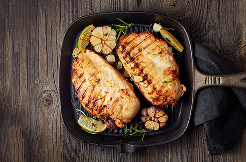 La carne de pollo es muy magra, tiene muy poca grasa infiltrada y la mayoría está debajo de la piel, así que, si la eliminamos, retiramos también la mayoría de la grasa.