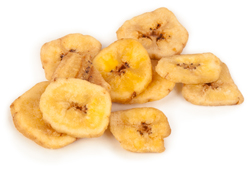 Se conoce a esta fruta seca como banana chip, plátano deshidratado y frito. Su aporte graso en casi un 30% superior al del plátano fresco.