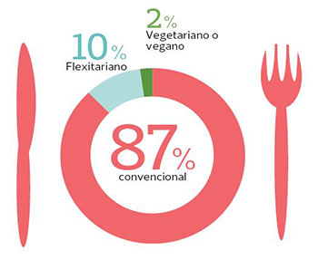 Las opciones vegetarianas se mantienen como pujante minoría, pero la nueva tendencia son los flexitarianos: vegetarianos que ocasionalmente comen algo de carne y/o pescado.