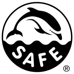 6. Dolphin Safe: se incluye en las conservas de atún para indicar que se ha pescado sin dañar o matar delfines al lanzar o recoger las redes. En realidad, no es una garantía de sostenibilidad porque se centra en una única especie y se pierde de vista a otras especies en peligro de extinción que también quedan atrapadas con frecuencia en las redes al pescar atunes.