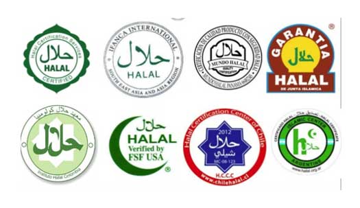 Los alimentos halal son los permitidos en virtud de la ley islámica. Esta consideración incluye su composición, elaboración, transporte y almacenamiento y también incluye la prohibición de haber estado en contacto con alimentos que no satisfagan los requisitos. Este certificado tiene especial importancia si se quiere exportar el producto a países musulmanes.Cada país tiene sus reglamentos y designa autoridades musulmanas para realizar las auditorías y el control de los productos. Existen, por tanto, varios sellos que acreditan que el producto es apto para el consumo musulmán en cualquier lugar del mundo. Es un distintivo es de utilidad para personas que sigan una dieta Halal. Estes es el logo de la Junta Islámica española y algunos sellos de otros países:
