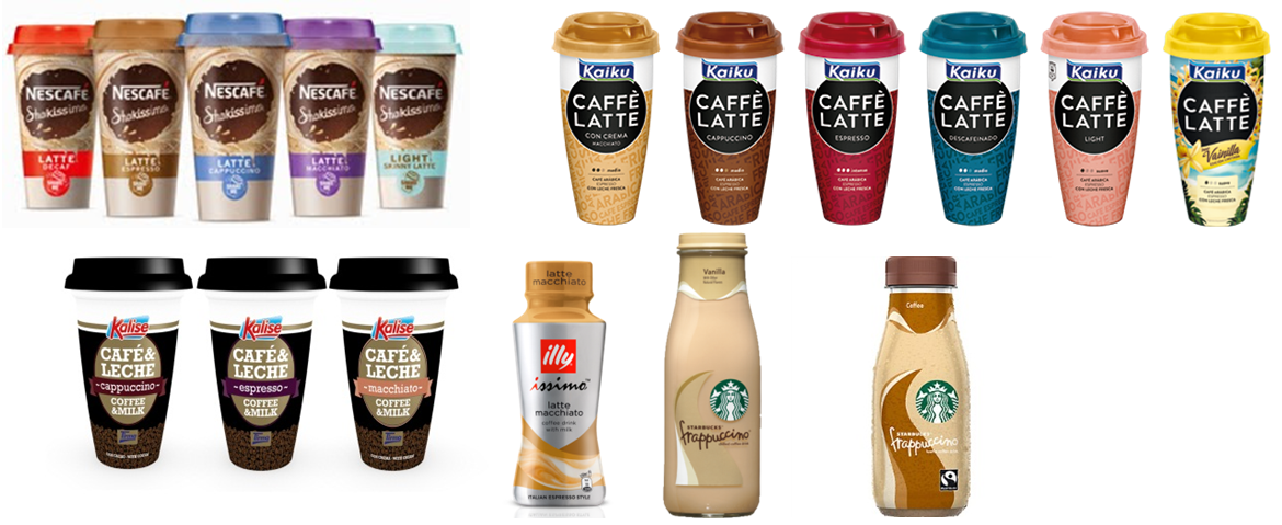 - Café: suele ser bajo y en algunos casos no llega al 1% (el Illy Latte Macchiato se queda en un 1% de extracto de café, el Burn Mocca en un 0,4%...).