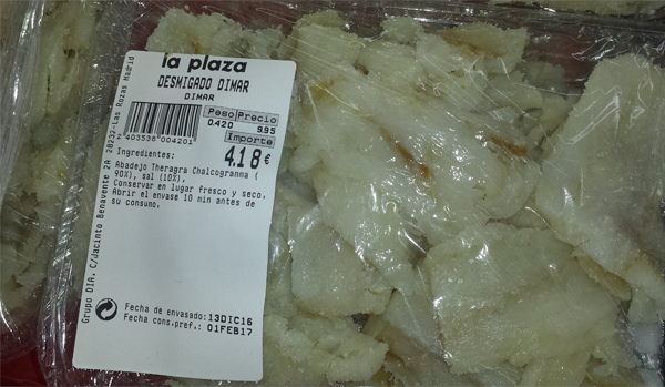 Así que, una vez más te pedimos que mires la letra pequeña del etiquetado para ver la denominación y la especie. Posiblemente si su precio es algo inferior al habitual no será bacalao pero vigila que no te vendan algo que no quieres comprar.