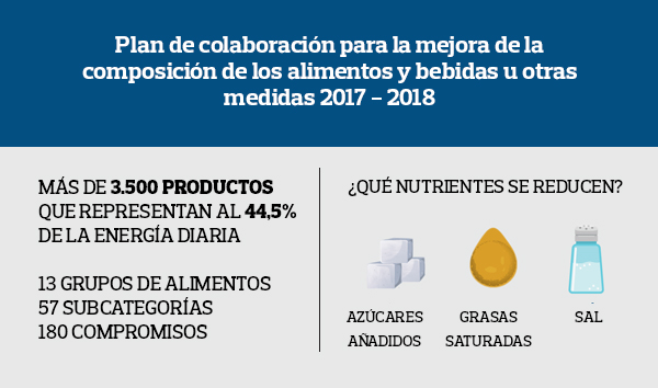 El plan de colaboración para la mejora de la composición de los alimentos y bebidas (y otras medidas) 2017-2020, ha sido elaborado por la AECOSAN, la FIAB y algunas asociaciones de distribuidores. Desgraciadamente OCU no formaba parte del plan. Su objetivo, dicen, era que los ciudadanos, y fundamentalmente los niños y jóvenes, sigan una alimentación más sana y saludable, con un mayor equilibrio y calidad nutricional.