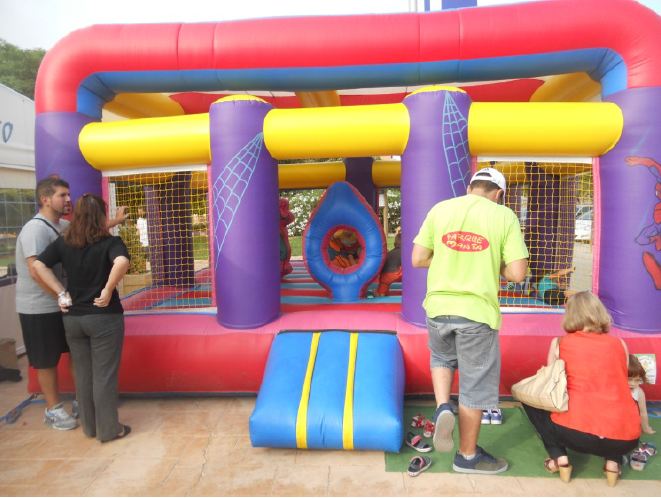 - 7. Los papeles en regla: en el castillo debe figurar que se cumplen los requisitos de la normativa EN14960. También tiene que haber una placa identificando la potencia del hinchador a utilizar, los usuarios (tanto su número máximo como su altura mínima), el año de fabricación y la dirección de la empresa responsable. La atracción debe contar con un seguro de responsabilidad civil y licencia de actividad. Es indispensable que cualquier particular que quiera contratar la instalación de estas atracciones se asegure de la existencia de estos seguros y permisos.