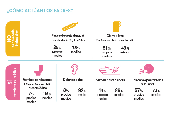 Para ello preguntamos a padres qué hacen ante distintas situaciones habituales. Como cuando su hijo tiene fiebre de corta duración, dolor de oído, toses o diarreas.