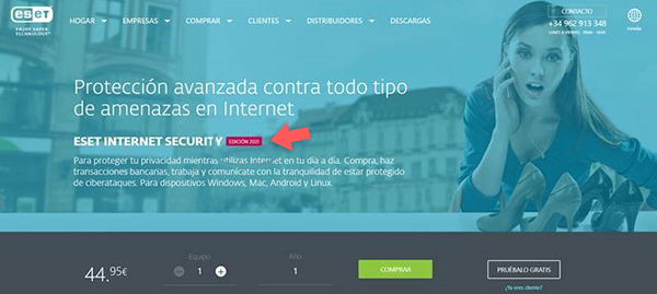 Este caso de Eset es un buen ejemplo: en la web indican que lo que venden es la versión de 2021 de Internet Security.