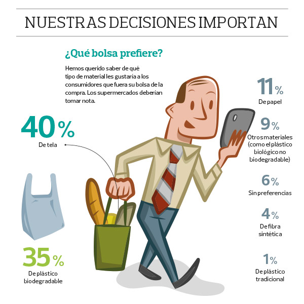 ¿Compras bolsas de supermercado o llevas de casa? ¿Pagarías por usar bolsas de plástico que fueran biodegradables?
