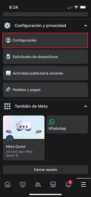 • Desde tu perfil, haz clic en el icono de las tres rayitas: