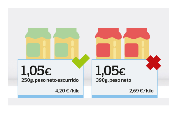 - Los consumidores sepamos, además del precio del producto, su coste por kilo, litro, o la unidad de medida correspondiente. Así se puede comparar entre productos de la misma categoría