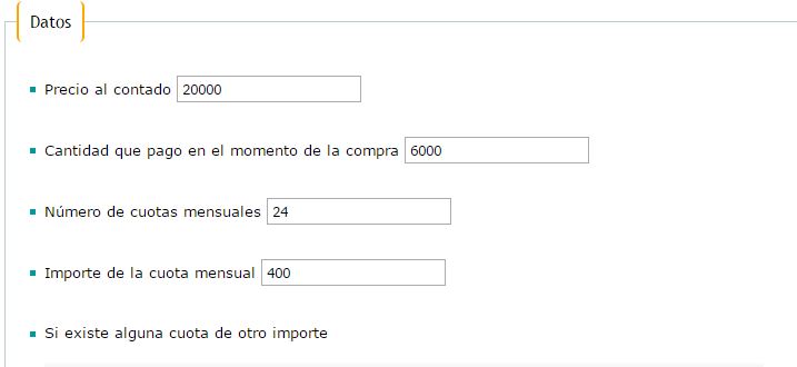 - Precio al contado, que indica el importe del préstamo o de la compra que deseas financiar.