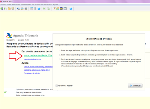 Lo primero que tienes que hacer es dar de alta tu declaración, seleccionando la opción "Hacer declaración Renta 2014"