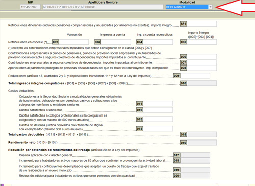 Importante: Si estás casado, aunque vayas incluyendo los datos económicos de tu cónyuge a la vez que los tuyos, para ver su declaración definitiva o la declaración conjunta, tendrás que cambiar la opción en la pestaña “Modalidad”.