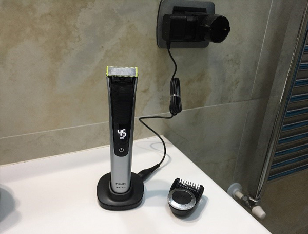 - Batería: La batería de este modelo (One Blade Pro QP6520) es, de acuerdo con el fabricante, la de mayor autonomía de todos sus productos. Hemos comprobado que, partiendo de la batería cargada al 100%, todavía quedaba más de un 50% de carga tras 4 afeitados.