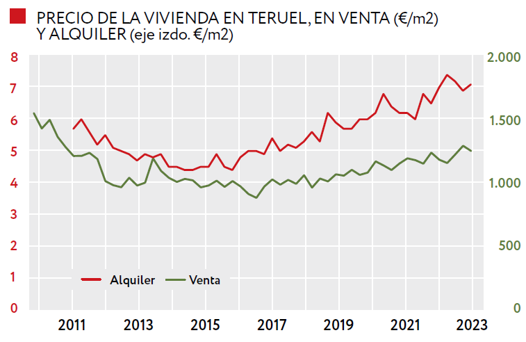 Precios de viviendas y garajes en Teruel