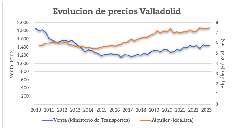 El precio de venta de la vivienda ha seguido una tendencia más plana en Valladolid.