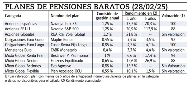 Los planes de pensiones más baratos