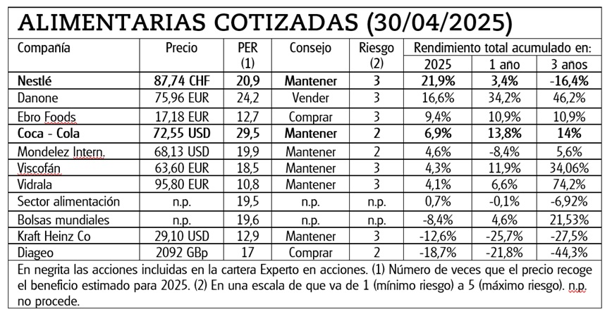 El sector de alimentación está poco vinculado a los ciclos y variaciones de la actividad económica. Con una demanda de alimentos creciente a largo plazo, es un sector relativamente seguro en momentos de incertidumbre como demuestra su comportamiento de los últimos meses: mientras que las bolsas mundiales ceden un -8,4% en el último año, el sector sólo lo hace un +0,7%. ¿Por qué? ¿Acaso no le afecta la guerra de aranceles? ¿Sigue mereciendo un voto de confianza?
