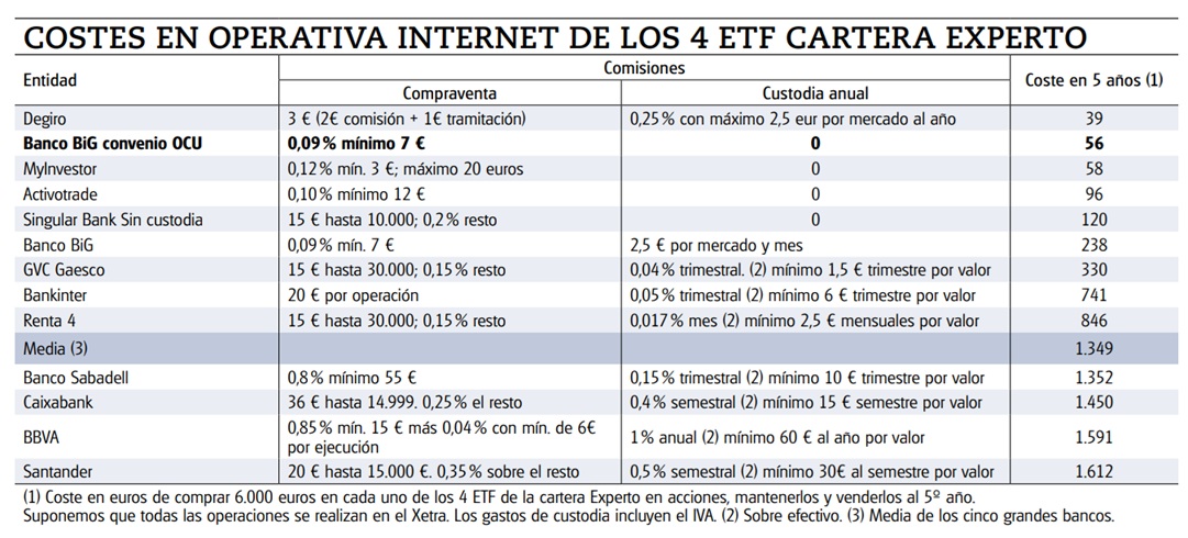 Los gastos de la operativa con ETF son iguales que en las acciones (compra y venta, custodia…) y, como con ellas, las diferencias de comisiones entre un intermediario y otro pueden ser abismales.