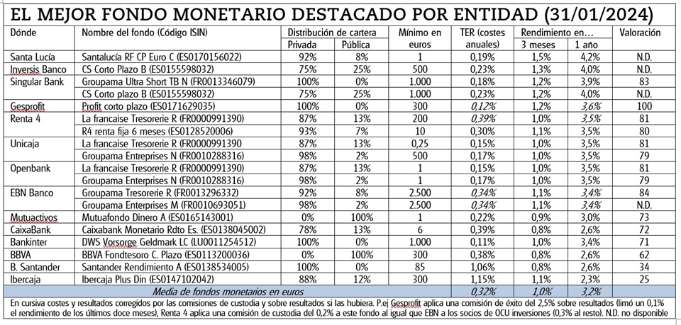 • Entre los monetarios, como es lógico, los hay mejores y peores. Nosotros señalamos con el dedo cuáles son los mejores a nuestros ojos. Sin embargo, en una categoría como esta, donde la diferencia de rendimiento entre estos y el mejor que puede encontrar en su entidad no llega al 2% en los casos más flagrantes, podemos entender que algunos inversores opten por la pereza y elijan el de su entidad.