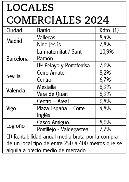 Los locales comerciales son una inversión que puede resultarle interesante siempre que se compren a un precio razonable y su alquiler pueda ofrecer una rentabilidad que compense su riesgo. Nosotros estimamos que habría que conseguir más de un 6,5% anual medio para que mereciera la pena. Nuestro estudio de mercado indica que se pueden encontrar locales con estas características en algunos barrios de ciertas ciudades (vea tabla). Vea más explicaciones y los intríngulis de esta inversión en www.ocu.org/fincas-y-casas