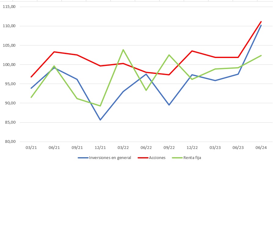 Bastante más optimistas son sus perspectivas respecto a la evolución de sus inversiones durante los próximos meses, siempre haciendo gala de cautela. Parece que ni los conflictos internacionales, ni los distintos procesos electorales (Francia, Reino Unido, Estados Unidos) hacen mella en su confianza. De hecho, el índice que refleja su confianza respecto a sus inversiones experimenta un notable tirón con respecto al de diciembre de 2023 (110,17 frente al 98,16), un nivel desconocido desde septiembre de 2014. En este sentido. casi un 35% de los encuestados dicen estar dispuestos a realizar nuevas inversiones, animados quizás por la percepción de una mejora en la situación económica y financiera general. Y entre estos, la mayoría se decantará por la inversión en acciones que, con un índice 111,16, vuelve a situarse claramente por encima de 100. Un renovado optimismo el del inversor hacia las bolsas que no demostraba desde… diciembre de 2007.• También la inversión en renta fija gana adeptos (índice 102,33). Aunque la mayoría de encuestados tiene la intención de mantener sus inversiones (66%), algo más del 20% prevé realizar nuevas inversiones.