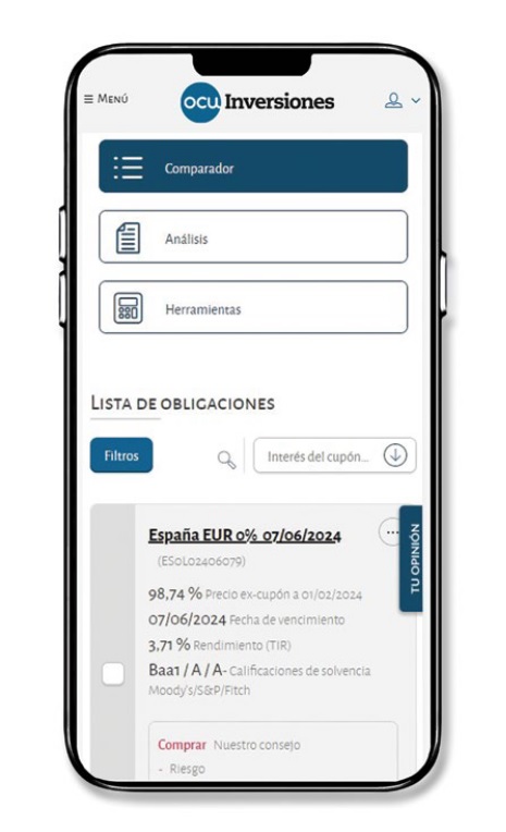 • También puede encontrar el título que mejor se adapte a su plazo o con un mayor rendimiento. Basta con que ordene el listado (clasifique por:) Fecha de vencimiento o Rendimiento (TIR).