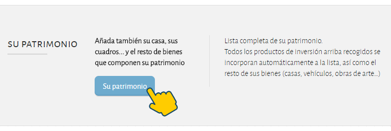 Para incorporar dichos activos o cualquier otro activo no financiero (casa, obra de arte…), haga clic en "Mi patrimonio" (debajo de la cartera).