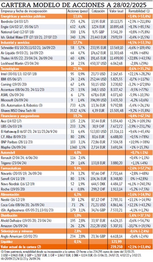 Cada mes, damos cuenta detallada de su comportamiento y de los valores que la componen. Así en febrero logró anotarse un +2,1% frente p.ej. al -0,8% que cedieron las bolsas mundiales en su conjunto.