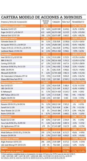 Septiembre ha sido un mes muy positivo para la inversión bursátil con un tirón de las bolsas mundiales que ha rondado el +2,8% y que se ha conformado como excelente para nuestra cartera que se ha revalorizado más del doble (+5,7%).