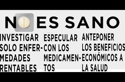 No es Sano es una alianza de organizaciones (promovida por Salud por Derecho, Médicos del Mundo, Organización Médica Colegial, OCU, SESPAS, NoGracias y CECUm, con el apoyo de Oxfam Intermón e ISGlobal), que tiene como objetivo, en el contexto de las próximas elecciones generales, movilizar el compromiso político por un cambio en el actual modelo de innovación de medicamentos que garantice el acceso universal a los mismos.