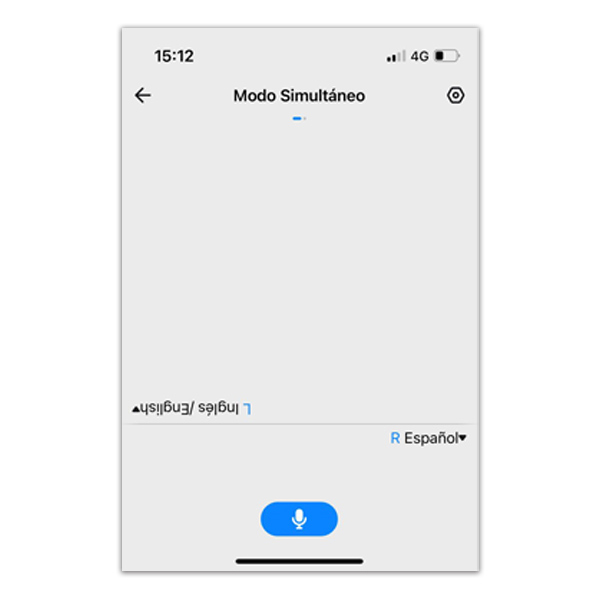 - Modo altavoz: Este modo te puede servir para hablar con gente que no conoces (por si no quieres compartir tus auriculares). Para ello, por un lado, tendrás que llevar los auriculares puestos y hablarás en tu idioma y, por otro lado, la persona que está conversando contigo escuchará la traducción por el altavoz del móvil y tú recibirás la traducción por los auriculares. En este modo es necesario pulsar el botón del micrófono cada vez que se habla.