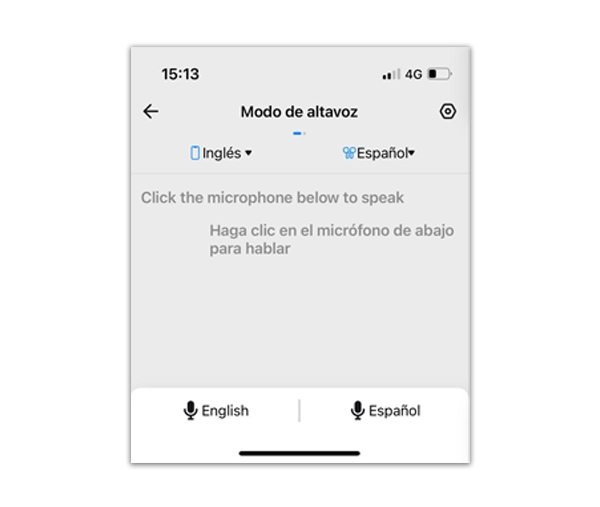 - Modo táctil: En este modo, cada persona se coloca con un auricular en su oído, así cada una de ellas hablará en su idioma. Esta opción es útil para tener conversaciones con la misma persona durante un largo rato; ahora bien, ten en cuenta que deberás tocar el auricular o micrófono del móvil para cambiar el altavoz.