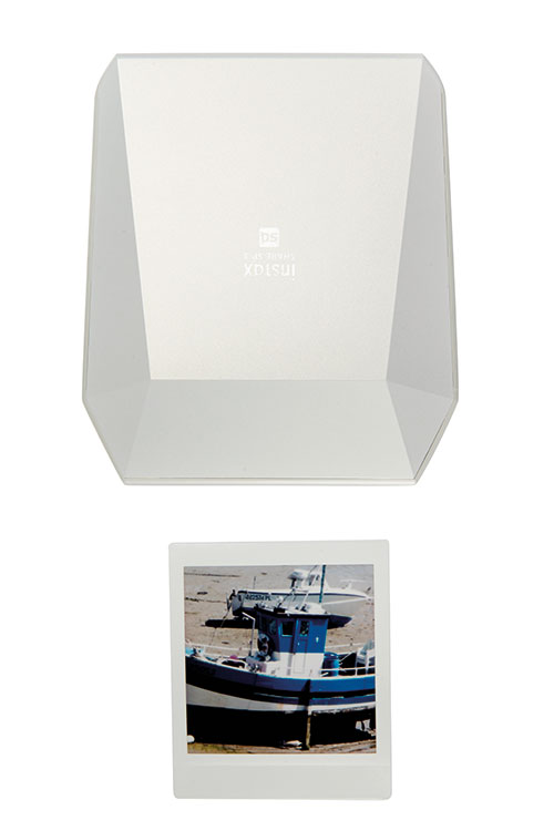 El último dispositivo usa la impresión Instax e imprime las famosas fotos cuadradas cuya imagen se revela poco a poco. El papel que utiliza contiene 3 capas de emulsión, revelador y fijador. La fotografía sale en blanco y poco a poco se produce el revelado, por lo que hay que esperar unos minutos para ver el resultado final.