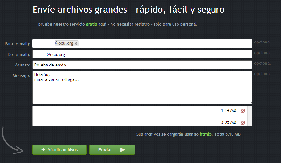 - Puedes enviar hasta 2 GB de archivos y generar un link (en lugar de enviar directamente por email) que luego podrás enviar por correo, pegar en un documento, publicar en un blog... La única pega es que está en inglés.