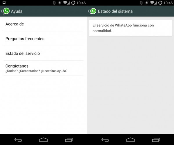 - Si funciona correctamente, el mensaje será: “El servicio de WhatsApp funciona con normalidad”.