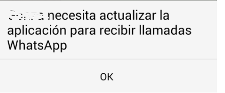 Y si el usuario al que llamamos no tiene actualizada la version nos encontraremos con el siguiente mensaje: