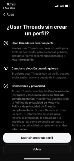 Pese a que Threads se lanzó oficialmente el 5 de julio, hasta el 14 de diciembre no ha llegado a la Unión Europea. La incertidumbre regulatoria que generaba sobre el uso de los datos personales y las disposiciones para compartir datos de usuarios en múltiples plataformas ha obligado a esperar a la aprobación europea. En estos meses, Meta habrá aprovechado para resolver el problema. Así, para cumplir con la normativa europea y dado que se trata de una aplicación vinculada a Instagram para acceder a través de tu cuenta de Instagram deberás dar conformidad con tu consentimiento, sobre el acceso desde tu cuenta.