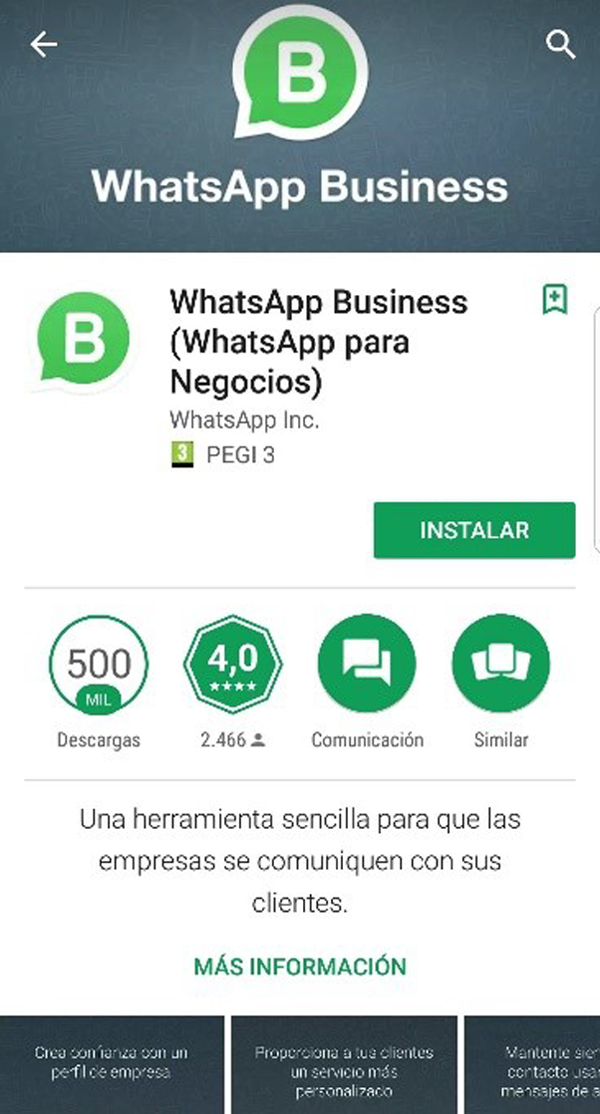 Para empezar a usar la aplicación tan solo has de descargarte la app “WhatsApp Business” o “WhatsApp para Negocios”. Puedes hacerlo desde este enlace para Android, (por ahora, no hay versión para iOS) y seguir las instrucciones.