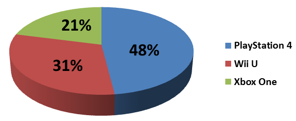 La PlayStation 4 de Sony es la videoconsola más común entre nuestros encuestados: un 48% de ellos tiene una en casa, frente al 31% de la Wii U y el 21% de la Xbox One.