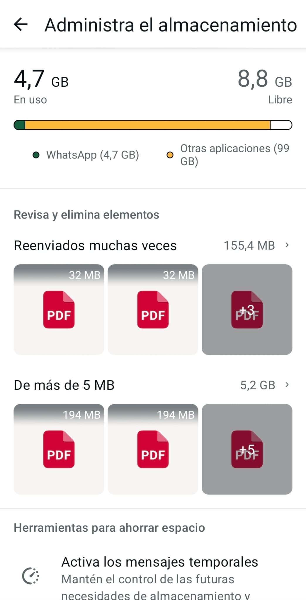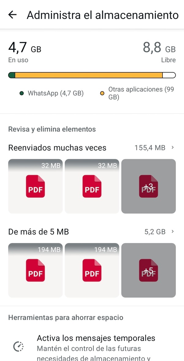 Gestiona el almacenamiento en WhatsApp
