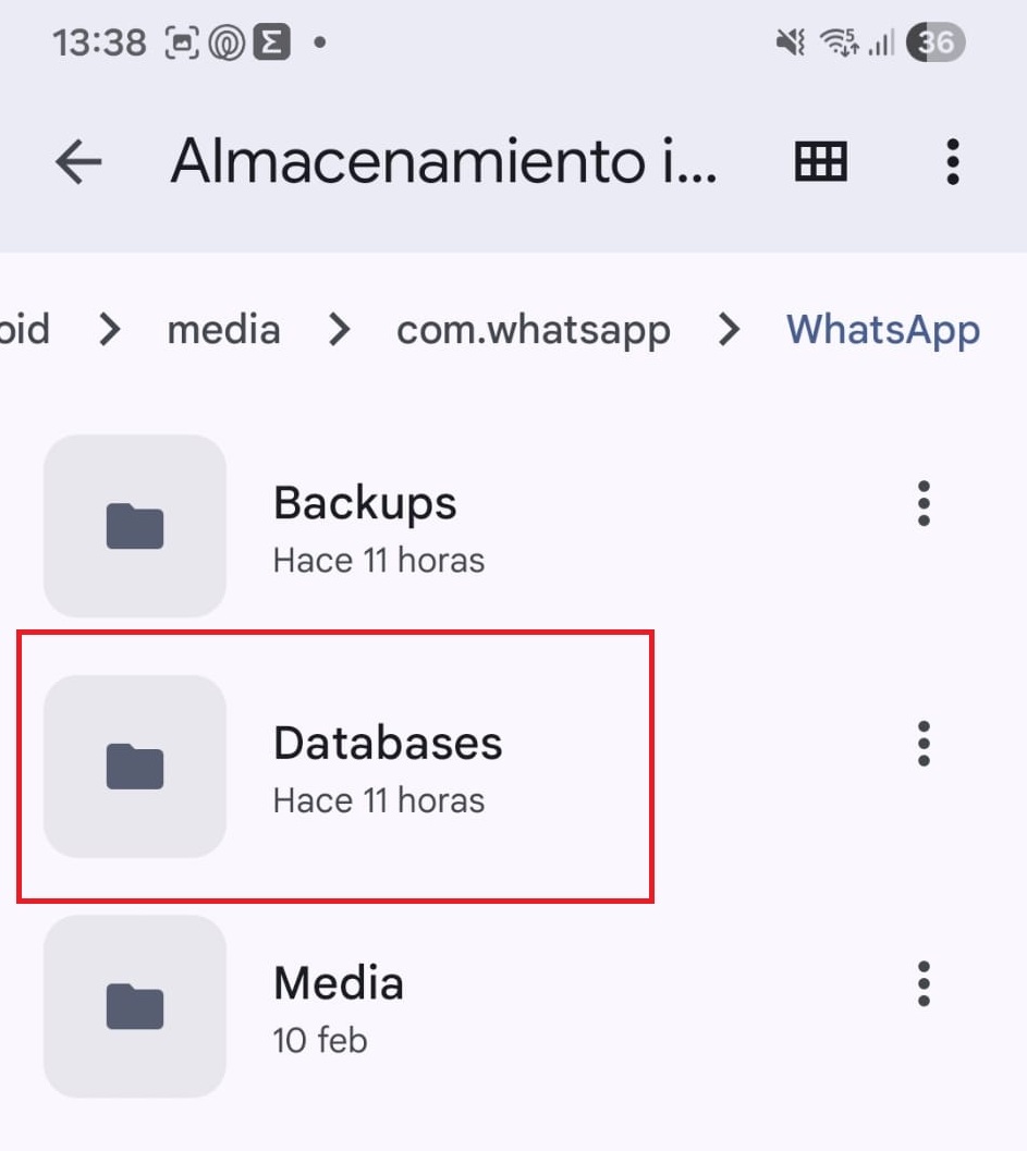 3. Busca la carpeta de medios de WhatsApp