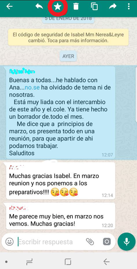 - 2. A continuación, pulsa en la estrella que aparece en la zona superior y ya tendrás el mensaje seleccionado como mensaje destacado.